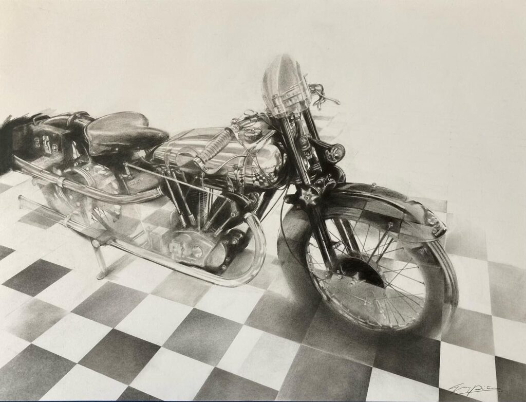 Size: 635 x 480mm unframed (Framed with Art Glass – 835 x 770mm) Medium: Graphite on 300 gsm Fabriano “Every S.S.100 Pendine model is guaranteed to have been timed to exceed 110 m.p.h. before delivery to the customer,” is from the 1927 sales catalog. Elegance, performance and limited production are what have made Brough (pronounced like […]