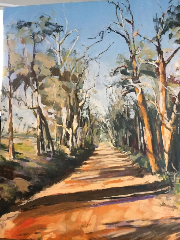 A sketch in oil on board of a dirt road near Margaret River, on the south west coast of Australia
